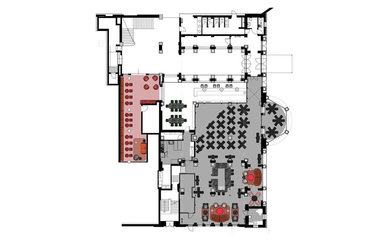 The renovation and refurbishment intent for the bar, foyers and event spaces was to make functional , flexible spaces that are bold and unique to its architectural history and it’s cultural significance, while fashioning a new energy fitting this historic and important cultural institution.